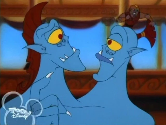 The Hydra is a vicious giant female serpent-like monster that grows multiple heads every time one is chopped off. Sealed under a boulder in Thebes, Hercules unintendedly releases the Hydra, which has been set up as a fixed contest by Hades to kill the hero. Hercules defeats it, thus earning the hero fame and adoration from the people of Thebes.