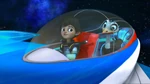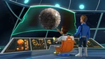 Miles gives Gadfly a snack and also tells him cosmic explorer rule #5: be nice to everyone in space. Shortly afterwards, Phoebe informs Miles that they have arrived at Karatum. Stella also detected Dibblex's asteroid mover, which has an invisibility shield on. Miles decides to use Dad's multi-layer insulation to cover the Star Jetter so that Dibblex is given another sparkly target. If that happens, she will turn off her invisibility shield and open the doors. Joe will follow the Callistos with his SpaceGuard cruiser.