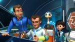 So far, they are enjoying the ride until a ship turns off its invisibility, and catches the Photon Flyer in a tow beam. Leo follows Miles and M.E.R.C. into the ship right before its doors close. Miles, Leo, and M.E.R.C. wonder where they are when someone pops in, telling the visitors that they are not invited, and her Fuzzies agree. Leo believes that this is some kind of misunderstanding, and the person and her Fuzzies like the ship they stole. Miles states that that is his ship, but the person says that that is her ship, and tells the Fuzzies to hit the red button and open the chute. They do so, causing Miles, Leo, and M.E.R.C. to be ejected from the ship, which then leaves. Leo assumes that that was not the Tomorrowland Transit Authority.