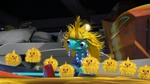 Once the Callistos leave, Gadfly decides to wait it out. However, Gadfly sees a blast-jet, and says that space thief rule #57 is finders keepers. Gadfly reveals that the blast-jet is more powerful than a boot-clamp, and leaves the Stellosphere. Meanwhile, once the Star Jetter gets close enough, the asteroid mover's invisibility shields turn off and catch the ship in a tow beam. The SpaceGuard cruiser follows it into the ship. Joe questions if it is a starship or a garage sale before he and the Callistos are confronted by Dibblex, who says that no one is allowed to see the sparklies. Phoebe tells her that she has something that belongs to Miles, not to mention the TTA. Dibblex does not know any of these, but Miles decides to go for his Photon Flyer. The Fuzzies decide to make another attempt to hit the red button and open the chute, but M.E.R.C. activates his wing shields to prevent that. Joe catches Dibblex, and tells her that once they catch Gadfly, they will place both behind some shiny bars.