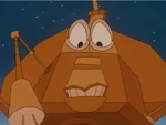 At the near end of the film, he is seen saying goodbye to Tinselina, as she has been invited to return to Earth by Toaster and the others.