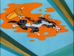 - ↑ Goofy says to Pete, "Well, I was teachin' Waffles to catch a Frisbee in his mouth. He wasn't too handy with a shot put, so I figured, uh..."