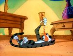 However, he can be seen on friendlier terms with Chainsaw at times as shown in "Three Ring Bind" when both he and Chainsaw agreed in disgust about the Ringmaster's plan to turn his own circus animals into puppy chow (dog food).