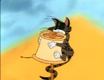 - ↑ "Meanwhile, Back at the Ramp": Goofy says, "Well, I once threw Waffles in the trash, and had to rescue her from the garbage truck."