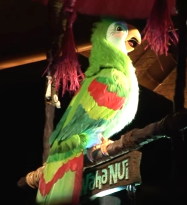 - Also during the part where Mahina and the emcee birds are discussing with each other after the song "Hawaiian War Chant", Waha Nui explains to the other emcee birds "I'd just about laid an egg" (presumably an allusion to José from the original Tiki Room attraction where the aforementioned character explains to the other emcee birds from the original attraction: "Sí, no one laid an egg, but me").