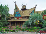 Tokyo Disneyland's Tiki Room is a blending of elements of its American counterparts, taking the exteriors of both American parks and the pre-show of the Magic Kingdom version, but also featuring most of the Tiki God sculptures from Disneyland. One unique thing about the exterior of this version is that it featured an unnamed macaw sitting on a perch.