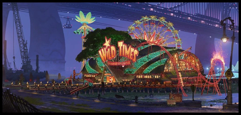 Wild Times was developed during a lengthy period of story development in which Nick was the protagonist, in place of Judy Hopps. Like the final version of the film, Nick was a con-artist, and Wild Times was meant to act as his greatest ambition yet. However, the entire purpose of Wild Times was to allow predatory animals a chance to roam without the restrictions of their tame collars. The collars were dropped from the story late in development, due to the darkness of the concept rendering the city of Zootopia too unlikable for the audience. As such, the concept of Wild Times was also scrapped. Nevertheless, Byron Howard has expressed interest in reviving the park in later Zootopia projects.