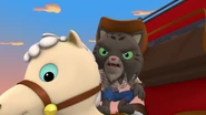 The episode starts with Sheriff Callie chasing after McGraw. Just as Callie is about to lasso McGraw, the cat pulls back a tree branch and it snaps back, leaving Callie hanging and allowing McGraw to escape.