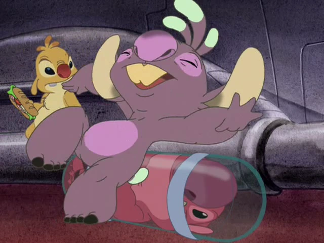 - This is one of five episodes where Gantu appears but makes no effort to catch the titular experiment, the other four being "Finder", "Mrs. Hasagawa's Cats", "Ace", and "Snafu".