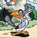 Zazu and two other hornbills spot her and are immediately infatuated with her. Simba and Nala pick up on this and try to get the shy Zazu together with her. All their attempts end up with Zazu hurt or embarrassed and in the end, when Zazu is really in trouble, she comes to his rescue and becomes his girlfriend.