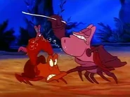 Zeus is a purplish-red crab and Sebastian's arch-rival from The Little Mermaid episode "Tail of Two Crabs".