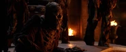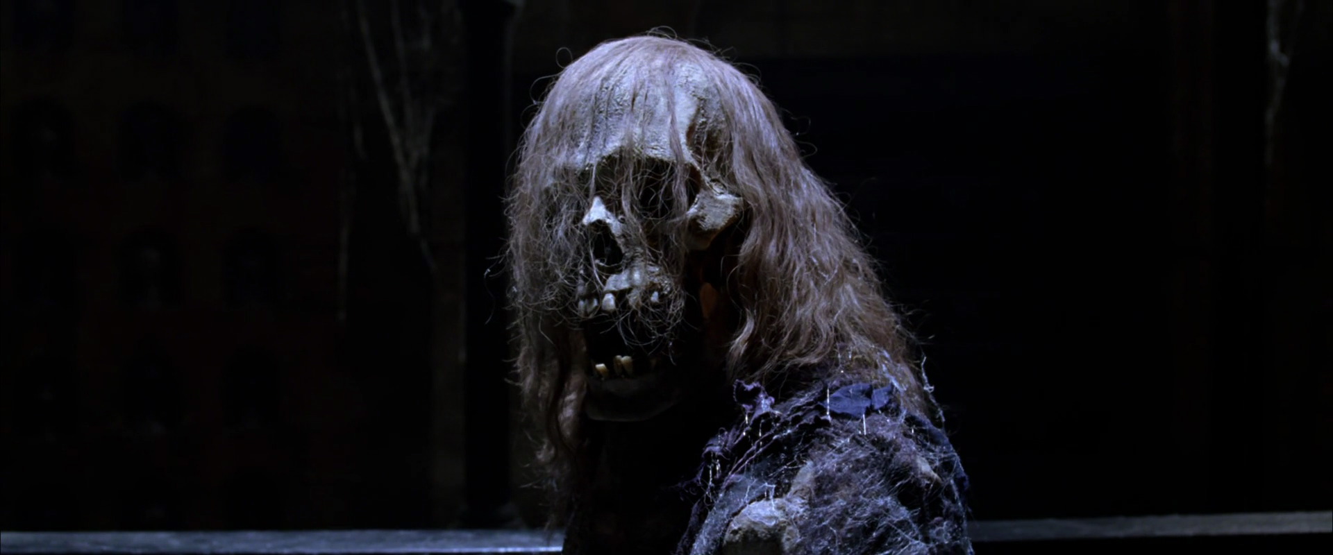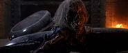 Jim Evers descends into a crypt located beneath a mausoleum with his daughter, Megan in order to find a key to unlock the secret of the curse. A black sarcophagus catches their attention and Jim opens it to find the key held clutched in the hands of its occupant. But no sooner does he remove the key than the corpse rises up as a zombie. The undead creature shambles toward the intruders, only for Jim to knock its head off.
