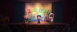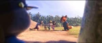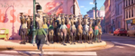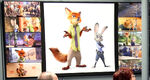 Rich Moore, Byron Howard, Clark Spencer, and members of the Zootopia (known as Zoomania in Germany) German dub, surrounded by the main characters of the film.